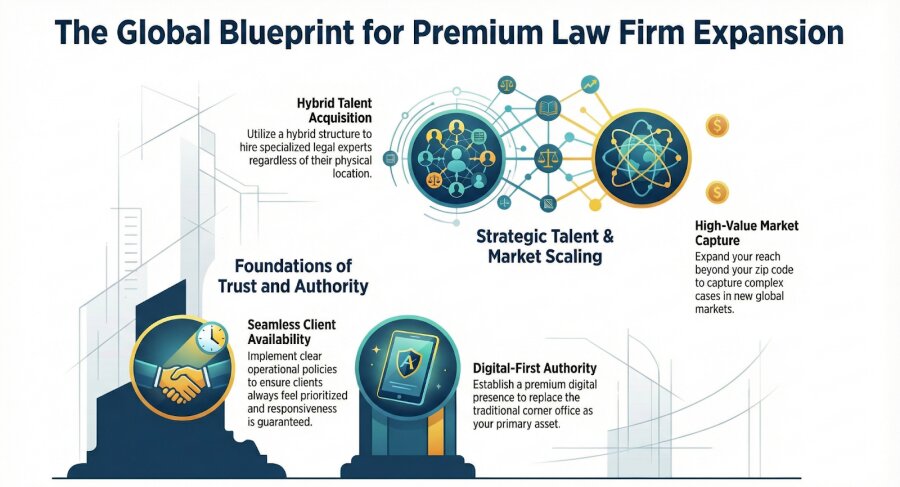 Corporate counsel and high-net-worth individuals no longer drive past your building to assess your worth. They evaluate your expertise entirely through screens.